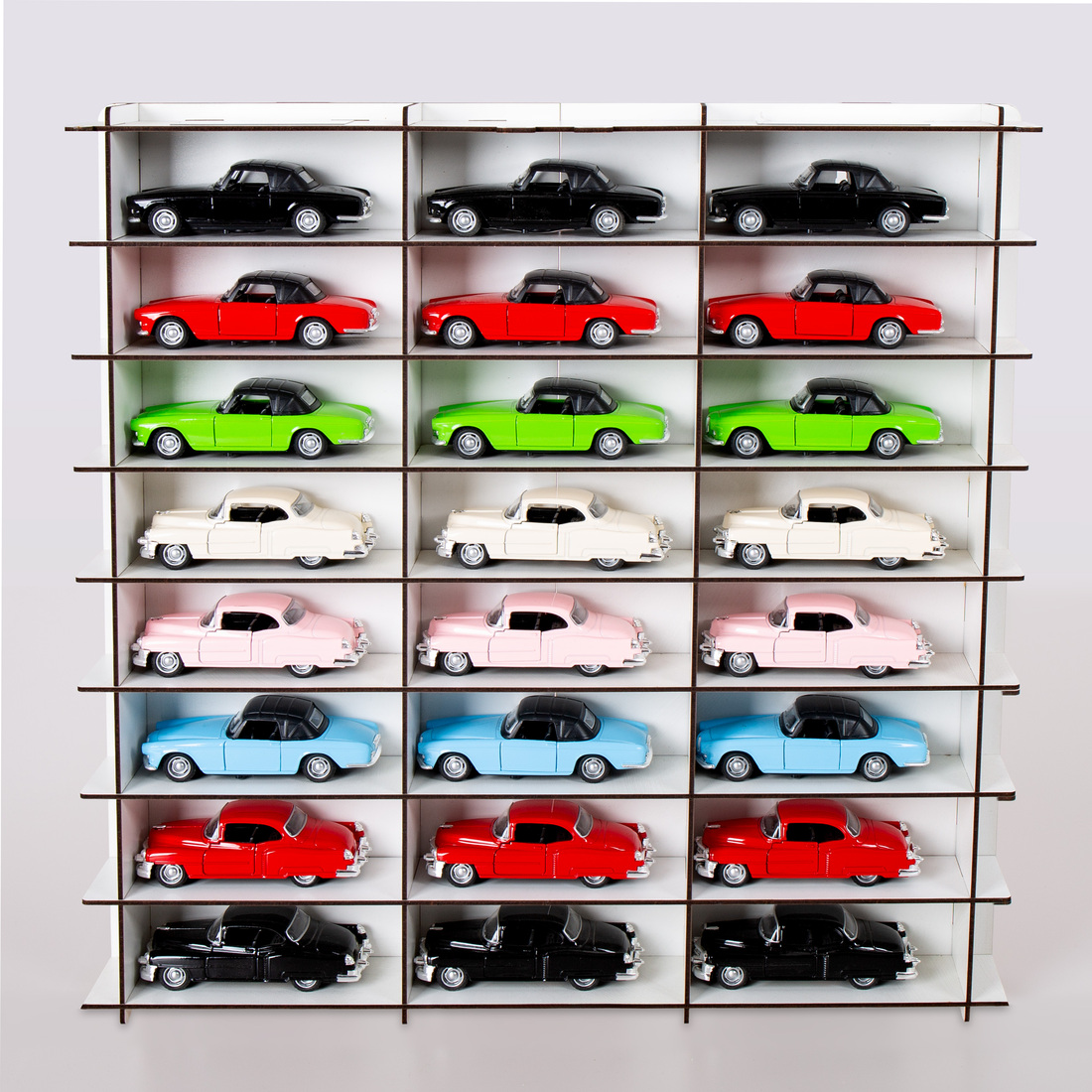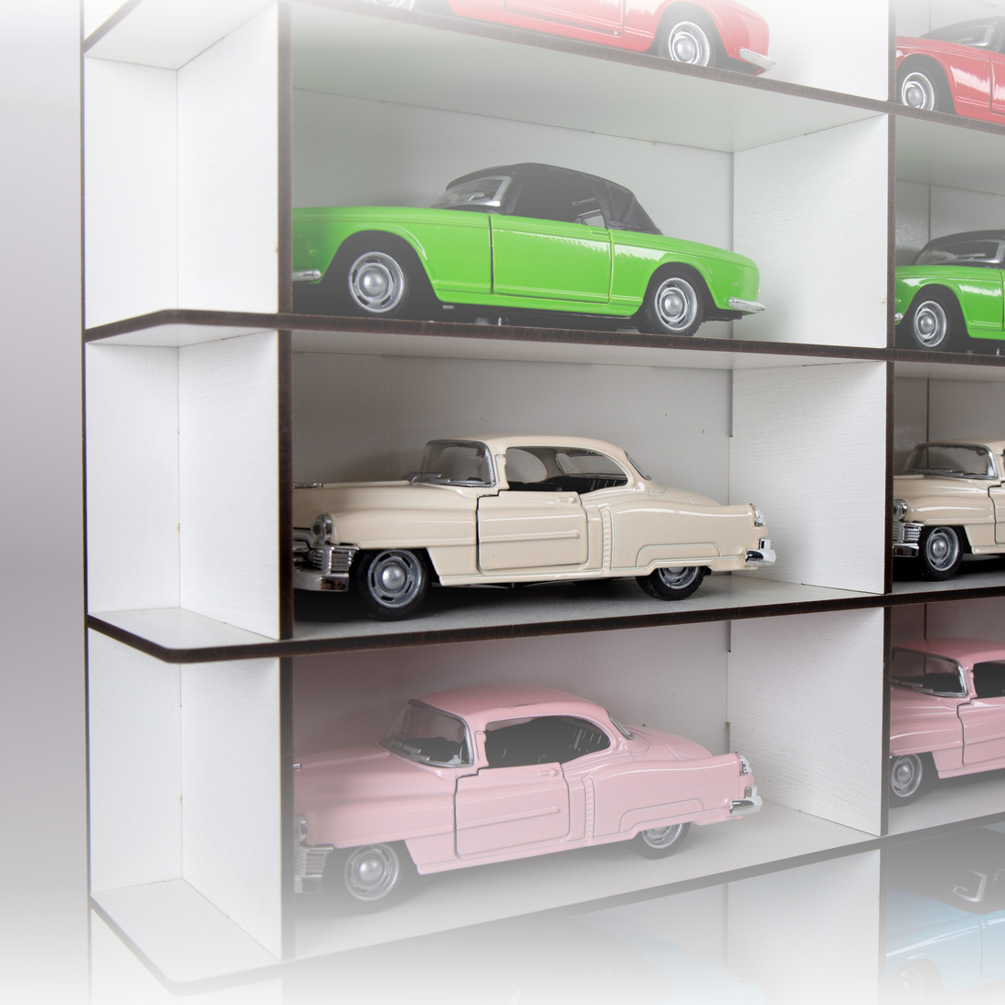 estetik, basit ve pratik raflar sayesinde koleksiyonunuzdaki arabaları saymak