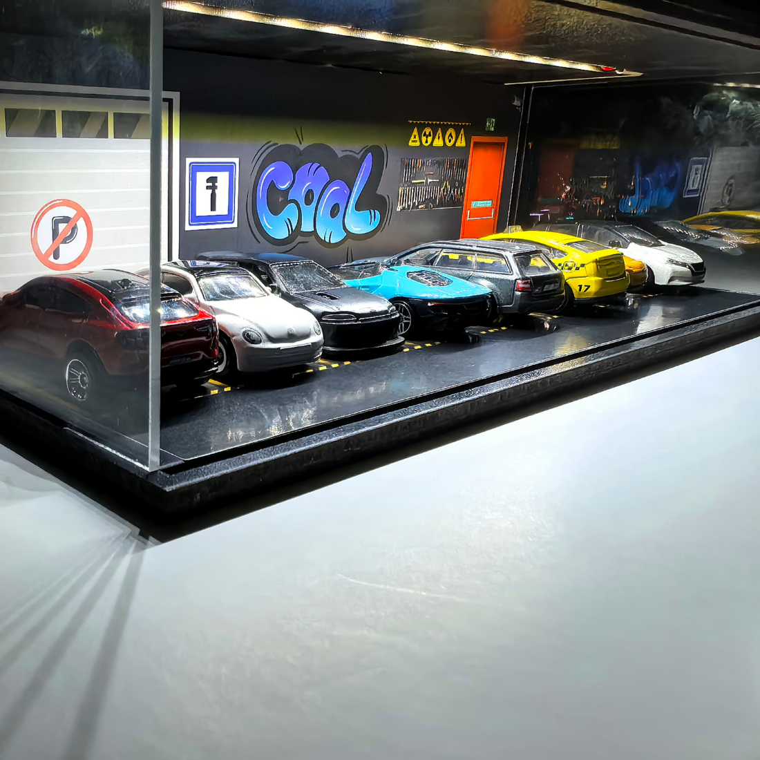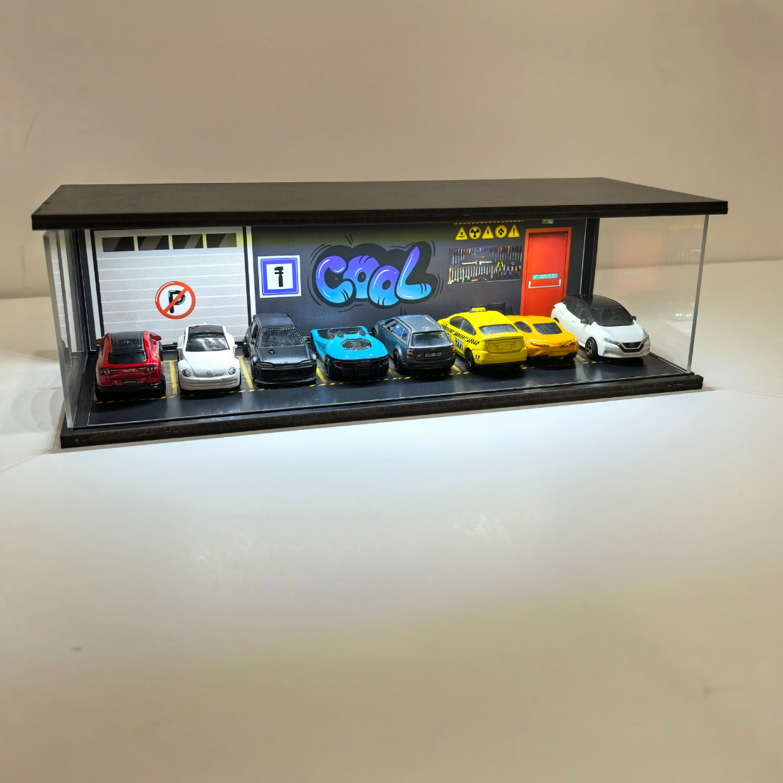 1/64 ölçekli model araçlarınız için özel olarak tasarlanan bu diorama garaj, aynı anda 8 aracı sergilemenize olanak sağlar. Modern tasarımı ve LED aydınlatması sayesinde hem koleksiyonunuzu öne çıkarır hem de bulunduğu ortama estetik bir dokunuş katar.