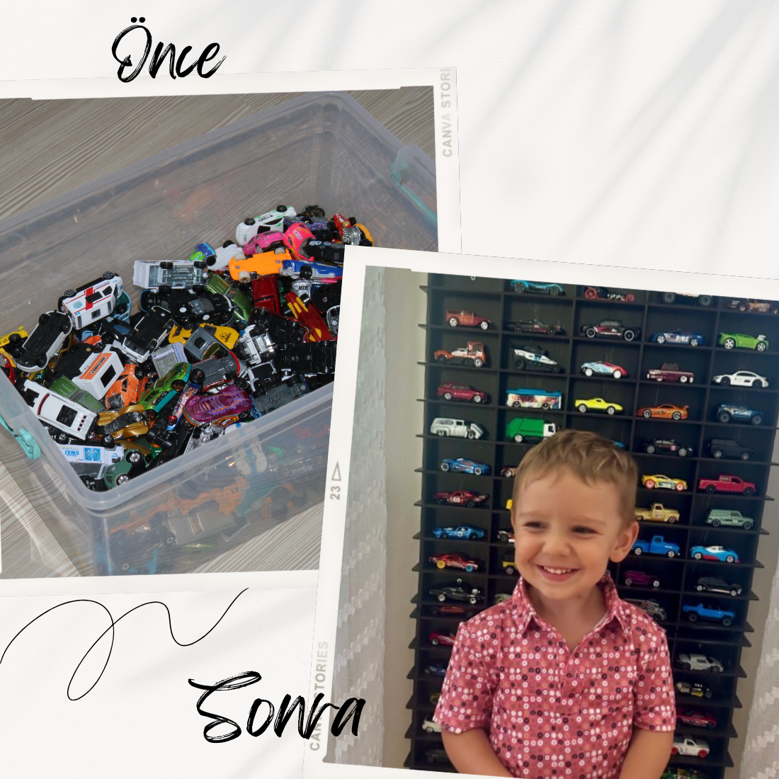 estetik, basit ve pratik raflar sayesinde göz bebeği arabalarınızı saymak da